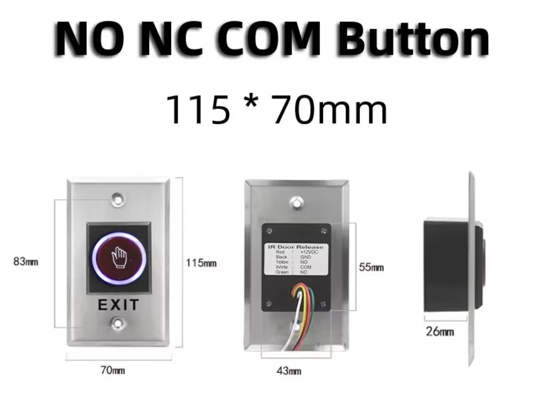 Botón de salida sin contacto, interruptor pulsador de liberación de puerta de 433MHz para sistema de Control de acceso COM NO NC con Control remoto de doble botón