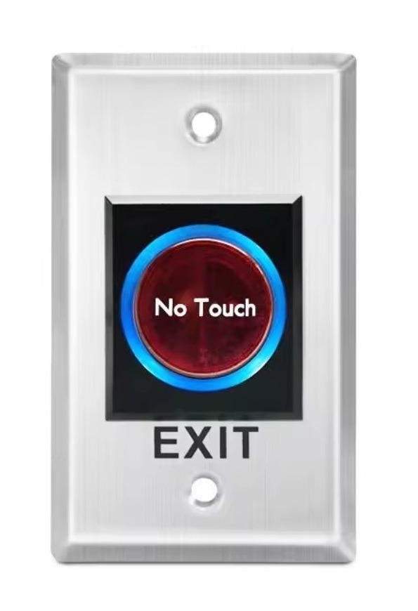 Botón de salida de puerta, interruptor de botón de liberación de salida de puerta sin contacto con sensor infrarrojo DC12V de acero inoxidable con retroiluminación para control de acceso Usando tecnología óptica infrarroja, cuando el botón es azul en modo de espera, la posición del interruptor se puede encontrar con precisión si no hay suficiente luz. Cuando la luz infrarroja reacciona, la luz de fondo se vuelve roja y la puerta se abre. 1. Sensor de salida infrarroja sin contacto, rendimiento estable y profesional. 2. Hecho de placa de acero inoxidable de alta calidad, fuerte, resistente a la corrosión y duradero. 3. Interruptor sensor sin contacto con retroiluminación azul, adecuado para sistemas de control de acceso. 4. Este interruptor de infrarrojos no tiene salida táctil y se usa ampliamente en sistemas de control de acceso.